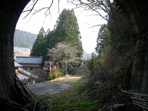 国道257号線を南下して来て 県道389号線の稲目トンネルを通って 県道32号線と交わる所まで来ました。 信号を左に曲がると、 大代棚田があります。 そんな場所を通り掛かった時、 ちらっと視界の隅に見えたのは… あっ! トンネルっ!! ちょっとわかりづらいけど 右上にトンネルが写ってます。 |