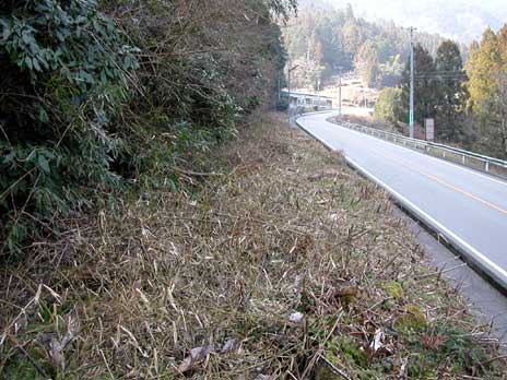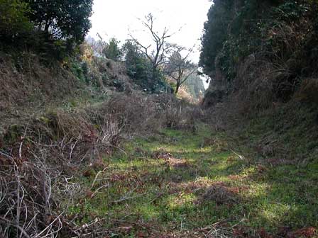 ちょうどここらが駅の構内でしょうか? 小さな切り通しになってる。 あ。左にある段差はホームの跡だ。 ちょっと上にあがってみましょう。 う〜ん… なんだかなぁ… 荒れすぎちゃって、 なにがなんだかわかりません。 微妙。 |