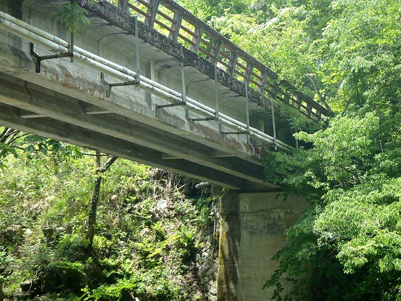 近くには県道の旧道橋の 「旧・猪洞橋」があり、 その橋を見つけた時に、 ここも発見しました。 現道の横に架かる細い橋は いかなる姿をしているのか? |