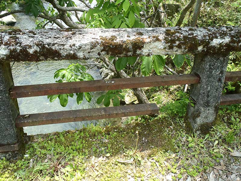 高欄はコンクリと金属製です。 これ以上無いくらいに 時間経過が分かりますね。 錆びた金属は途中でポッキリ。 |