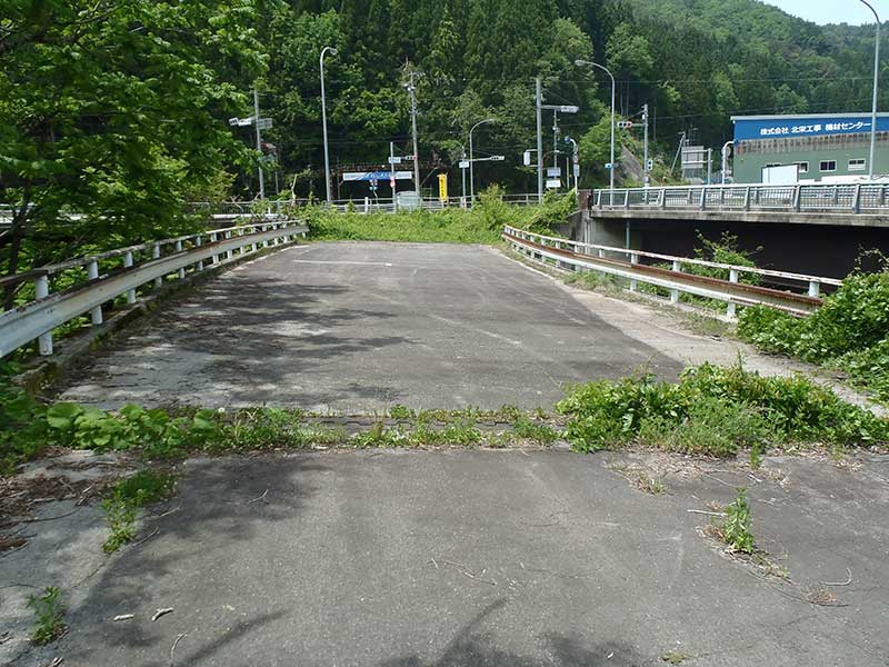 25年以上経った割には、 きれいな路面ですね。 それもそのはず、 旧橋の手前で左側に別れる道があり、 そちらは国道をくぐって行く 現役の道だからです。 なのでこの旧道は 封鎖もされずに通れるのです。 |