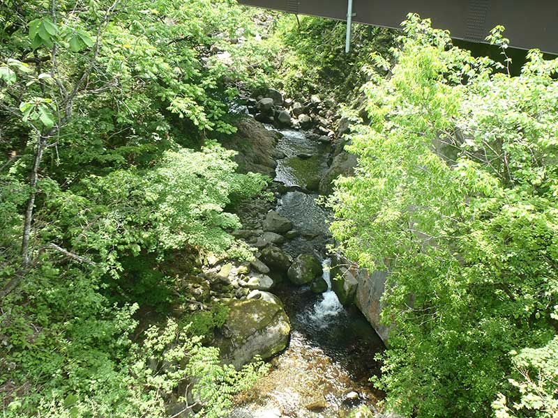 橋から下を見れば 渓流が見えます。 これは長良川ではなくて 猪洞川と言います。 この近くには 長良川に猪洞川と鷲見川が 合流する場所があります。 |