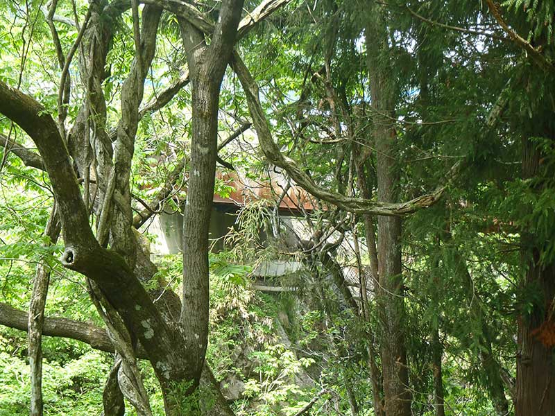 旧道横から入った脇道から 橋の側面を見ようとしたけど、 木々に邪魔されて これだけしか見えなかった。 |