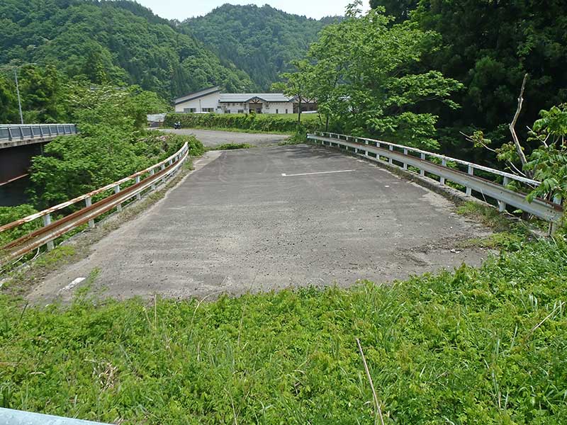 旧・猪洞橋は1車線ながら 楽にすれ違い出来る幅があります。 じゅうぶん使えるレベルですが、 国道につながる部分は 塞がれていて通れません。 でもまあ、廃物件としては イマイチな感じですね。 |